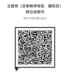 根据《色情网址大全 2023-2026年度“三定”方案》(浙商大党〔2023〕3号)核定的主管岗岗位数,请各色情网址大全(部门)制定主管岗(含非教师专技、辅导员)各岗位的说明书,经主要领导审核后于2023年2月22日(周三)上午10点前在钉钉填写完毕并提交(扫描下图二维码),纸质版报送到人事处(综合楼1031室)。