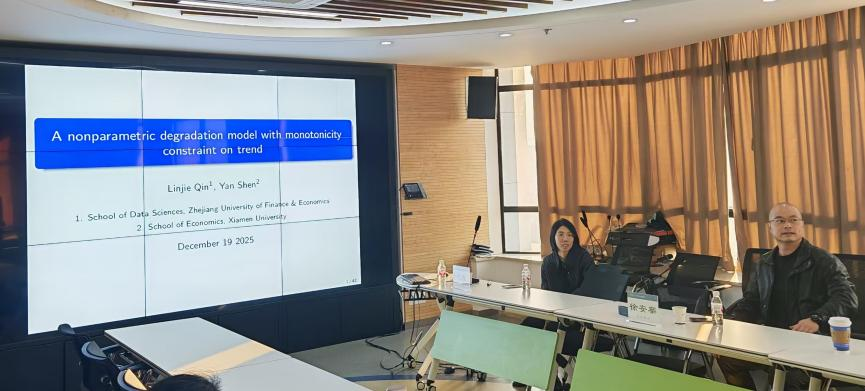 2025年12月19日下午,厦门大学沈雁教授应邀来我校开展以“A nonparametric degradation model with monotonicity constraint on trend”为主题的学术讲座,本次讲座在综合楼644会议室举行,由统计与数据科学色情网址大全徐安察教授主持。